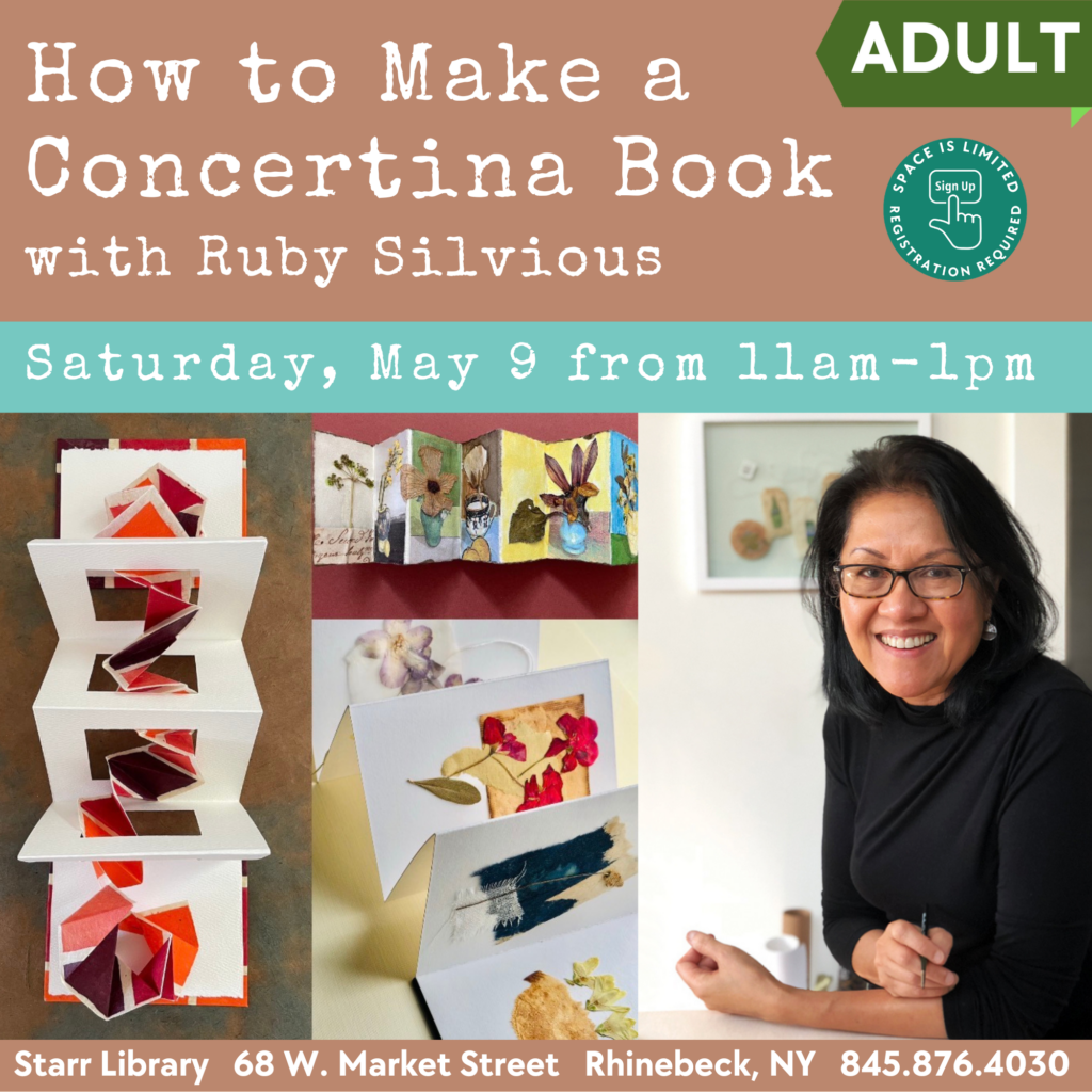 Explore the unique structure of an accordion book and its creative possibilities for storytelling, collage, and other artistic expressions. Using a single piece of cardstock, participants will create multiple panels/pages by folding the strip into an accordion or zigzag shape, allowing for continuous, flowing compositions. Suitable for all skill levels. Participants are welcome to bring their own cut images, papers and ephemera. Cardstock and assorted printed papers, glue and scissors will be supplied.
